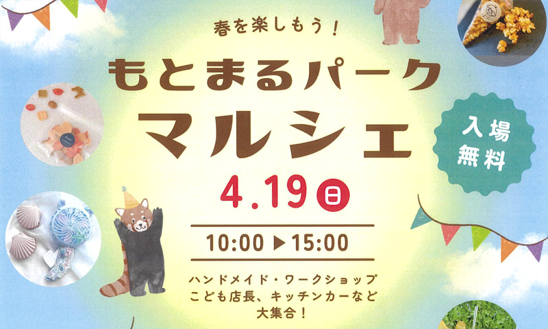 20265.3~ イベント 5月3日(日)~5月6日(水) もとまるパークGWイベントのお知らせ 体験型のイベントや、素敵なパフォーマンスステージなどを毎日開催します!!キッチンカーもGW期間中やってくるよ。 DATA.2026 . 4 . 22 イベント もとまるパーク5月のイベントカレンダーができました! 心地よい初夏の風を感じる5月。過ごしやすい季節にオススメのイベントが盛りだくさんです。 DATA.2026 . 4 . 22 20264.25 イベント 4月25日(土)、26日(日) 【第1回!キッチンカーグルメフェス】開催! 20台のキッチンカーが勢揃い!25日、26日は、もとまるパークへ集合! DATA.2026 . 4 . 14 20264.19 イベント 4月19日(日) 【もとまるパークマルシェを開催】開催! ワークショップや、雑貨販売、体験コーナーなど盛りだくさん! DATA.2026 . 4 . 14 20264.11~ イベント 4月11日(土)~ <全国出張!!さかがみ家>グッズ期間限定販売 4月11日(土)からもとまるパークで、<全国出張!!さかがみ家>のグッズを期間限定で販売しています! DATA.2026 . 4 . 14 20263.19 イベント 3月19日(木) <全国出張!第2弾!!さかがみ家> 第2弾!!さかがみ家さんのもとまるパークへの出店が決定しました! DATA.2026 . 2 . 12 20262.20 イベント 2月20日(金)・23日(月・祝) 紙芝居読み聞かせイベント 開催!! 2月20日(金)・23日(月・祝)<紙芝居読み聞かせイベント>2日間にわたって開催いたします。 DATA.2026 . 2 . 10 20258.23 イベント 8月23日(土)24日(日)、30日(土)、31日(日) もとまるカフェ&マルシェがオープン! 8/23(土)、8/24(日)、8/30(土)、8/31(日)の4日間でオープニングイベントを開催いたします。 DATA.2025 . 8 . 20 20257.12 イベント 7月12日(土) フリーマーケットイベント開催! キッズ用品、ベビー用品がテーマにしたフリーマーケットを開催します。 DATA.2025 . 6 . 17 20255.2 イベント 5月3日(土)~5月6日(火) ゴールデンイベント開催! 5月3日(土)~5月6日(火)もとまるパークでゴールデンイベントを開催します。 DATA.2025 . 5 . 2 20254.4 イベント 4月6日(日)10:00~15:00 もとまるパークスプリングマルシェ開催! 4月6日(土)もとまるパークにてスプリングマルシェを開催いたします! DATA.2025 . 4 . 4 202412.14 イベント 12月14日(土)11:00~11:20 もとまるにーど開催! 第2土曜日はもとまるの日!本巣市のマスコットキャラクター”もとまる”が「もとまるパーク」と「モレラ岐阜」にやってきます! DATA.2024 . 12 . 12 202412.14 イベント 12月14日(土)10:00~15:00(雨天中止) もとまるパーククリスマスマルシェ開催! こだわりアイテムや美味しいグルメ、楽しい体験など素敵なイベントをたくさんご用意しています。 DATA.2024 . 12 . 13