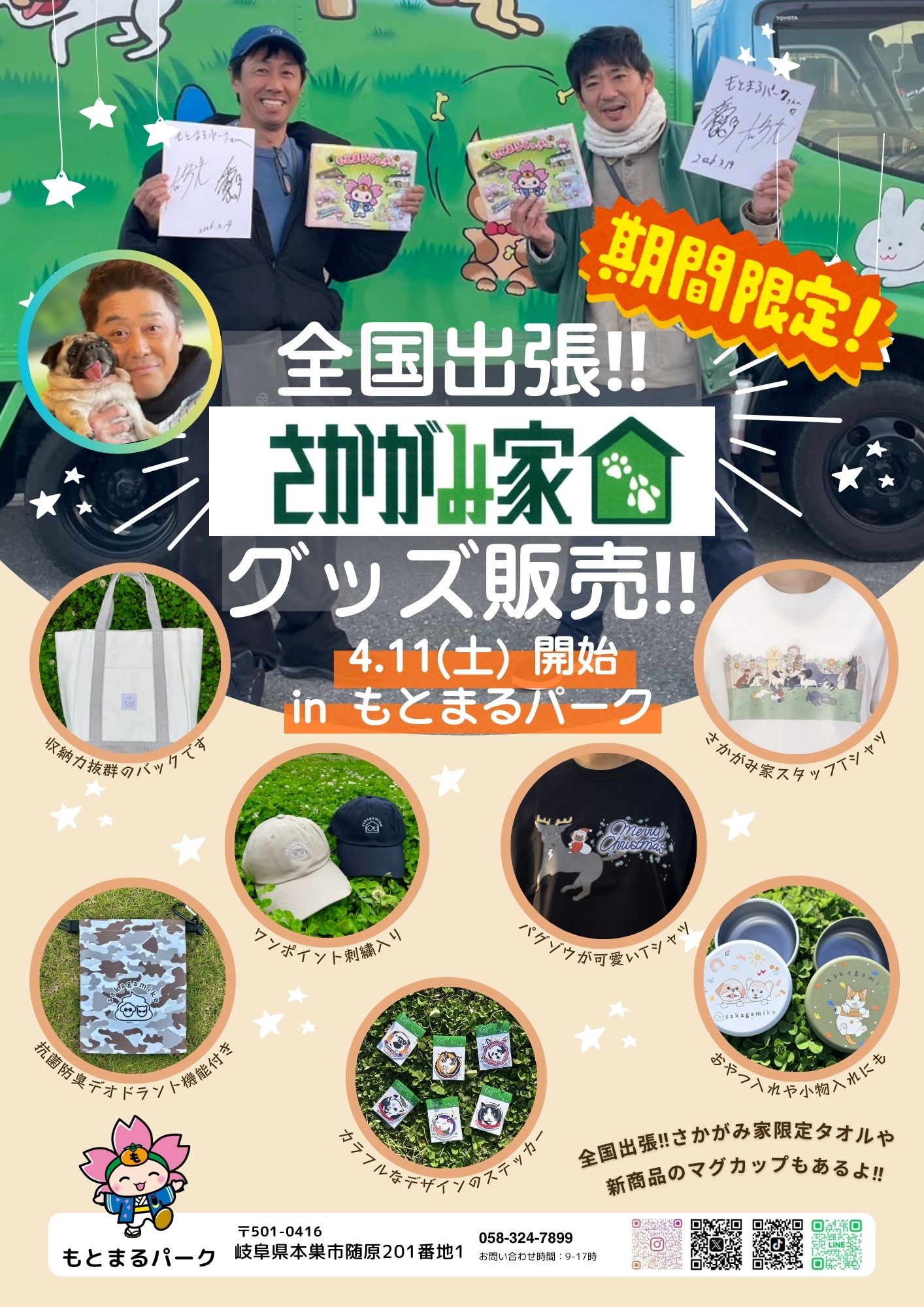4月11日(土)からもとまるパークで、<全国出張!!さかがみ家>のグッズを期間限定で販売しています!